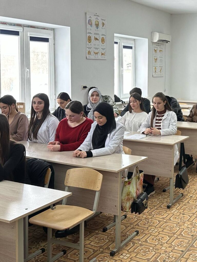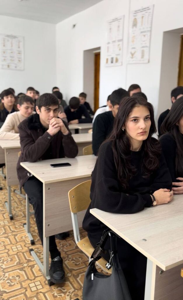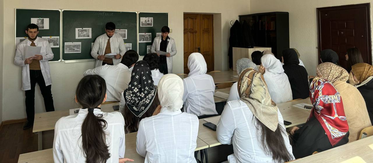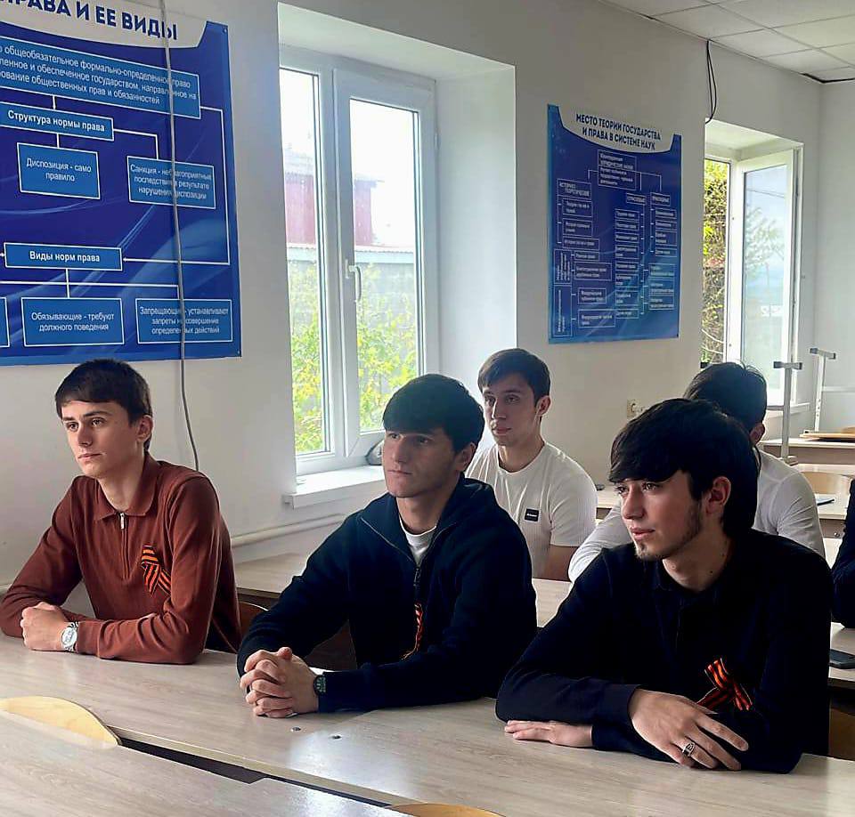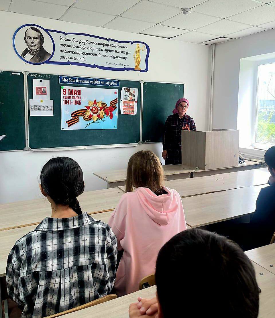 80 лет прошло со дня Великой Победы, но не стёрлась в людской памяти война. И забыть мы её не имеем права. В сегодняшнем культурно-просветительском мероприятии приняли участие студенты, преподаватели и гости, в числе которых были: Ераки Аюпович Гантемиров — член ОПРИ, основатель и руководитель музея «1 и 2 Мировых войн и истории края», расположенного в с.п. Сагопши, Курейш Харунович Евлоев. Мероприятие началось с приветственной речи директора ЧПОУ «Многопрофильного профессионального колледжа» Келиговой Мареты Хаджибикаровны. Она напомнила о важности сохранения исторической памяти. По словам Мареты Хаджибикаровны, история учит нас понимать, что без жертвенности и самоотверженности невозможно добиться значимых результатов. Знатоку истории, Курейшу Харуновичу было с чем выйти к молодёжной аудитории. Он знает всех известных выходцев из того или иного района, нашей республики, проявивших себя гороически во время Великой Отечественной войны. Живые примеры, которые он сегодня приводил, вызывали у собравшихся чувство патриотизма и гордости. Проведение таких мероприятий играет важную роль в воспитании молодого поколения. Оно помогает сохранить память о подвигах наших предков, воспитывает чувство патриотизма и уважения к истории своей страны. Наш священный долг — сохранить и передать младшим поколениям светлую память о героях войны и тыла, стараться быть достойными их подвига. Низкий им поклон за мирное небо над головой!