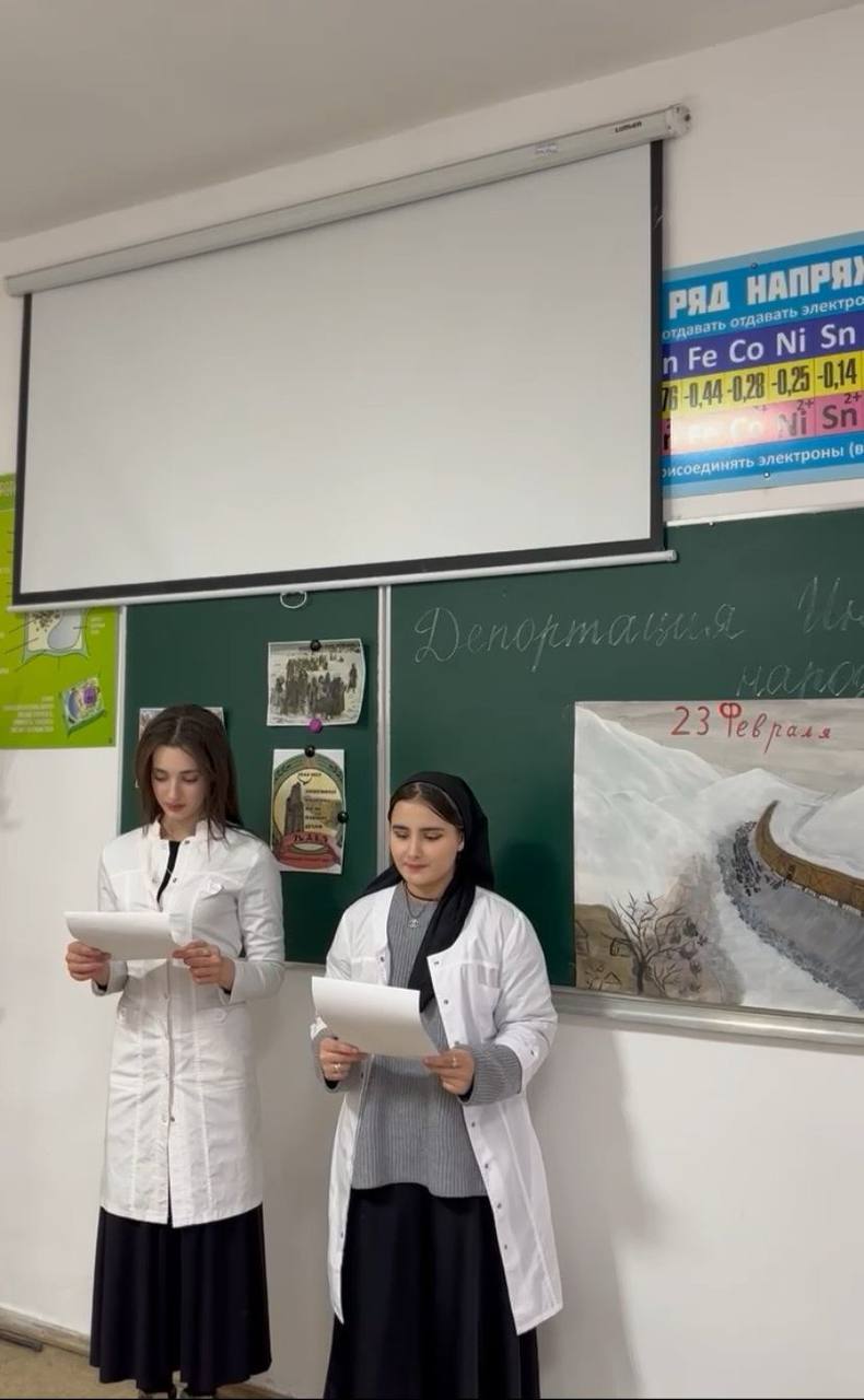 23 февраля — трагическая дата в истории ингушского народа. Для нашего народа это тяжелая и скорбная дата. Именно в этот день в 1944 году ингуши, обвиненные в измене Родине, были депортированы в Среднюю Азию и Сибирь. С целью формирования у подрастающего поколения чувства патриотизма и сопричастности к истории своего народа, студенты подготовили доклады, стихи описывающие трагические дни, которые пережили ингушский народ.