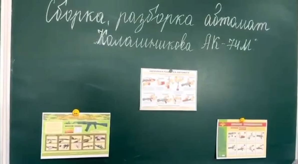 На уроке была рассмотрена тема посвященная разборке и сборке автомата Калашникова. Были наглядно рассмотрены основные элементы автомата Калашникова, очередность и правильность сборки основных частей автомата.