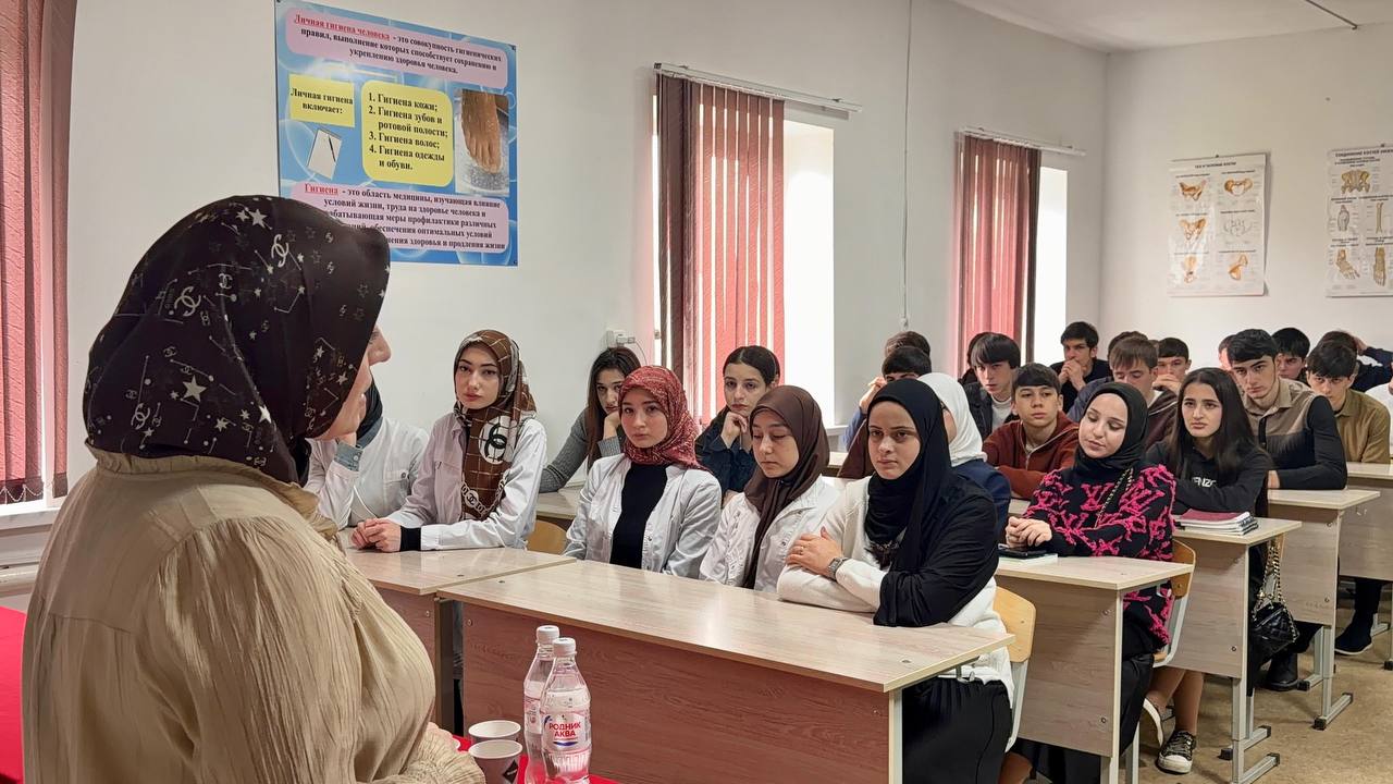 Актив 2 учебной гр.СП 9-25 Цечоева Ясира, Газдиева Хава, Точиева Хава, Султыгова Хадижа и Арсанова Сабина под руководством куратора Мадины Хаджибикаровна К. подготовили мероприятие посвященное важности стоматологической профилактики и ухода за зубами