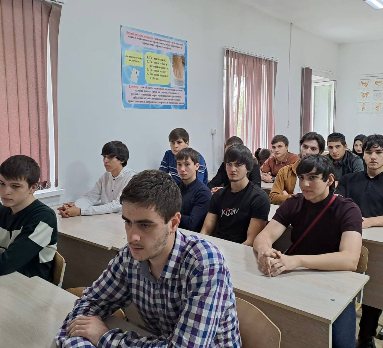 Со студентами 1, 2, 3 курсов была проведена содержательная беседа, в ходе которой были рассмотрены в том числе вопросы значения мира на земле, сущности терроризма, формирования религиозной и межнациональной терпимости, патриотизма, приверженности здоровому образу жизни, и недопустимости вовлечения в деятельность террористических экстремистских организаций.