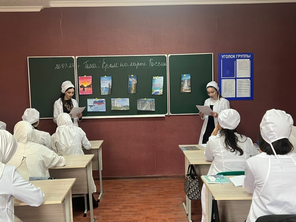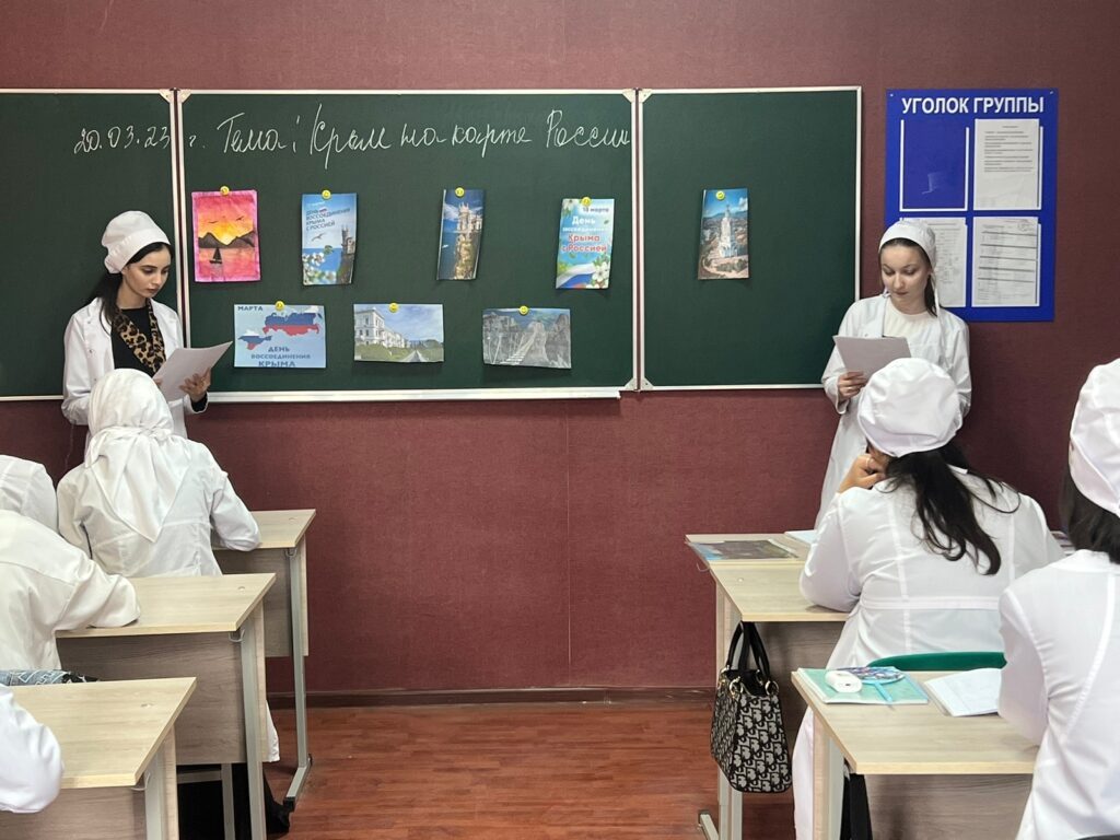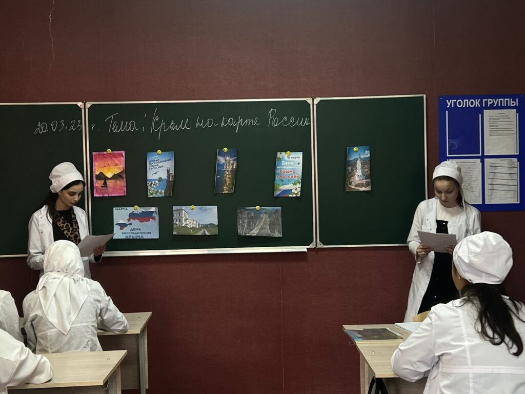 20 марта преподаватель истории Медова М.И. в цикле «Разговоры о важном» провела внеурочное занятие посвященное теме – «День воссоединения Крыма с Россией». Сегодня педагог и студенты говорили об удивительном месте с легендарной историей и славными подвигами – о Крыме. Ребята узнали, что история Крыма неразрывно связана с историей России. Крым – исторически русская земля и олицетворение боевой славы. 18 марта 2014г. был подписан договор о вхождении в состав России двух новых субъектов РФ – Республика Крым и города федерального значения Севастополь.