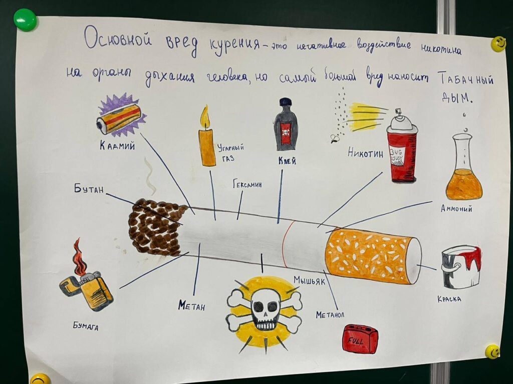 11 октября в ЧПОУ «МПК» Келигов Б.Х. провел открытый урок по дисциплине Основы безопасности жизнедеятельности на тему:«Профилактика курения табака, никотиносодержащей продукции несовершеннолетними обучающимися». Цель урока: привлечь внимание учащихся к негативным последствиям курения табака. Ребята сделали стенгазету «Курить или не курить», изготовили буклеты «Курение — это вред». Студенты группы ИСИП-9-23 подготовили доклады о вреде электронных сигарет и никотина на организм человека. Преподаватель ОБЖ рассказал ,что никотин — основное вещество, содержащееся в табаке, вызывающее зависимость, является третичным амином. При курении электронных сигарет никотин попадает в лёгкие и там быстро всасывается в кровь. Уже через 8 секунд после затяжки электронной сигареты он попадает в мозг.