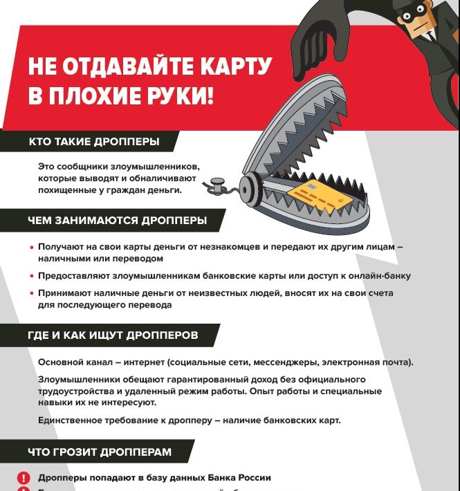 Кто такие дропперы, или Как не стать соучастником преступления Мошенники стараются не светить свои банковские счета в преступных схемах. Они используют дропперов — посредников, которые получают деньги от жертвы обмана. Так аферисты заметают следы и избегают блокировки личных карт. Разбираемся, как мошенники ищут дропперов, можно […]