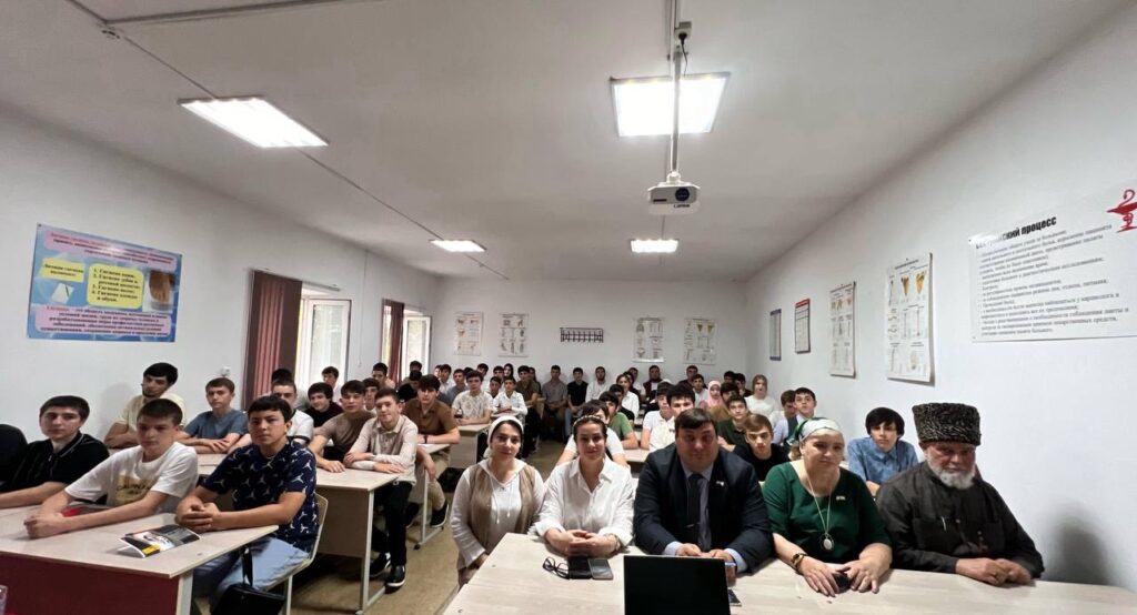 Со студентами 1, 2, 3 курсов была проведена содержательная беседа, в ходе которой были рассмотрены в том числе вопросы значения мира на земле, сущности терроризма, формирования религиозной и межнациональной терпимости, патриотизма, приверженности здоровому образу жизни, и недопустимости вовлечения в деятельность террористических экстремистских организаций.